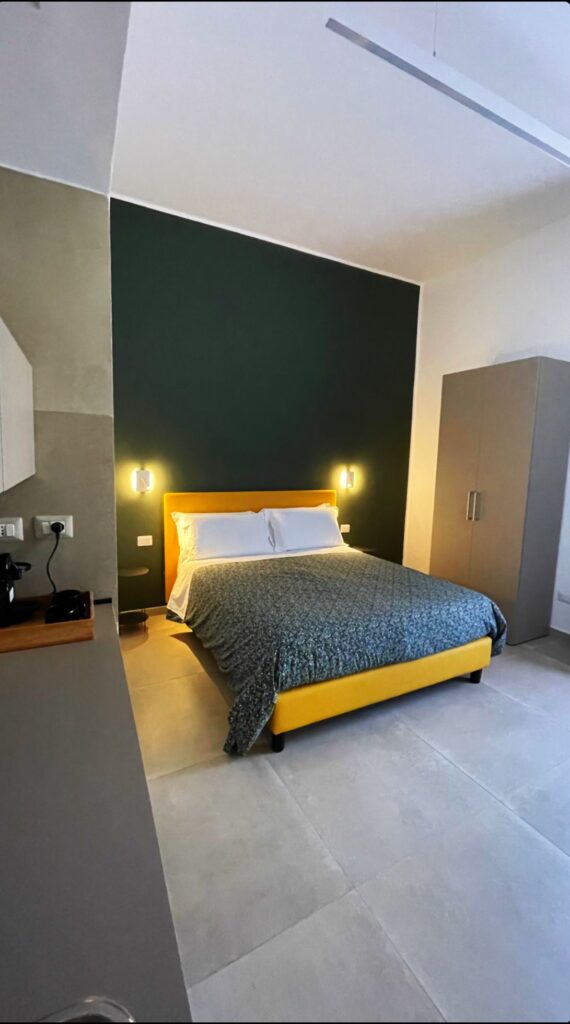 Camera 202La Casa di Giano Camera doppia dotata di letto matrimoniale con materasso memory form, con possibilità di sdoppiarlo in due letti singoli è dotata di bagno privato con finestra, ampia cabina doccia con kit benessere, balconcino personale con affaccio su strada principale, climatizzatore autonomo, mini frigo bar, fornetto a microonde, macchina del caffè e […]